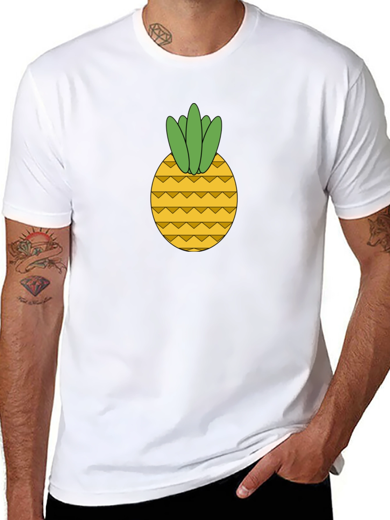 Rock a tropical vibe with this stylish black T-shirt. The design features a fun, cartoon-style pineapple graphic at the center, adding a playful touch to your casual wear. Made from comfortable fabric, this tee is perfect for everyday wear, whether you're lounging at home or heading out with friends. The bold print stands out against the black background, making it a versatile piece that pairs well with jeans, shorts, or casual pants. Add a pop of fun to your wardrobe with this eye-catching pineapple T-shirt, guaranteed to turn heads and spark conversations!