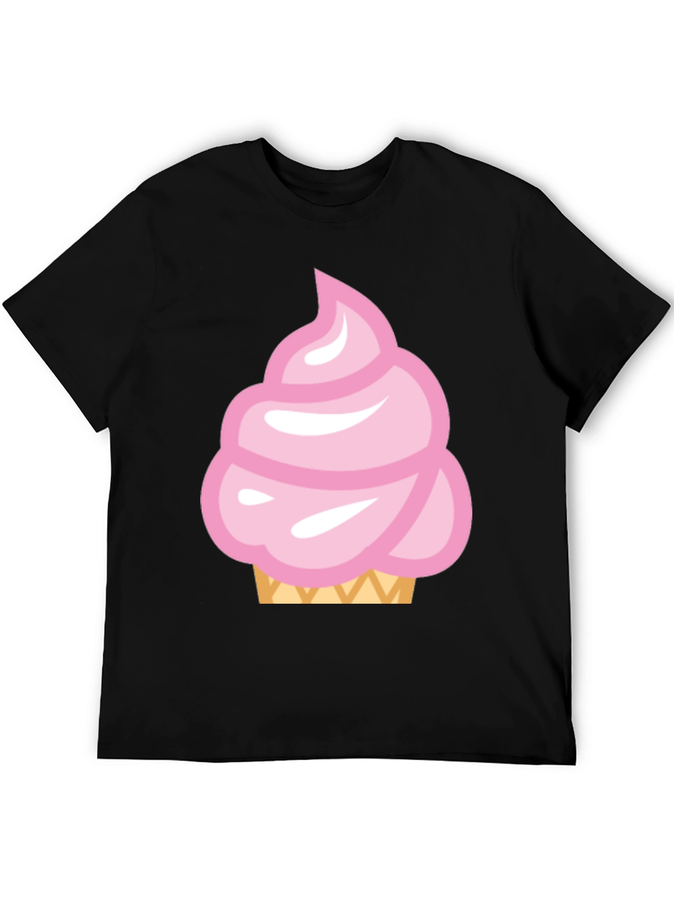 This stylish black t-shirt features a fun, eye-catching graphic of a pink ice cream cone. The soft pastel colors and playful design make it a great choice for casual wear. The shirt appears to be made from a comfortable, breathable fabric, ideal for everyday activities. The classic fit ensures a flattering silhouette for all body types. Whether you're heading out for a summer day, running errands, or simply relaxing at home, this t-shirt will add a touch of sweetness to your wardrobe. Pair it with jeans, shorts, or a skirt for a versatile and trendy look.