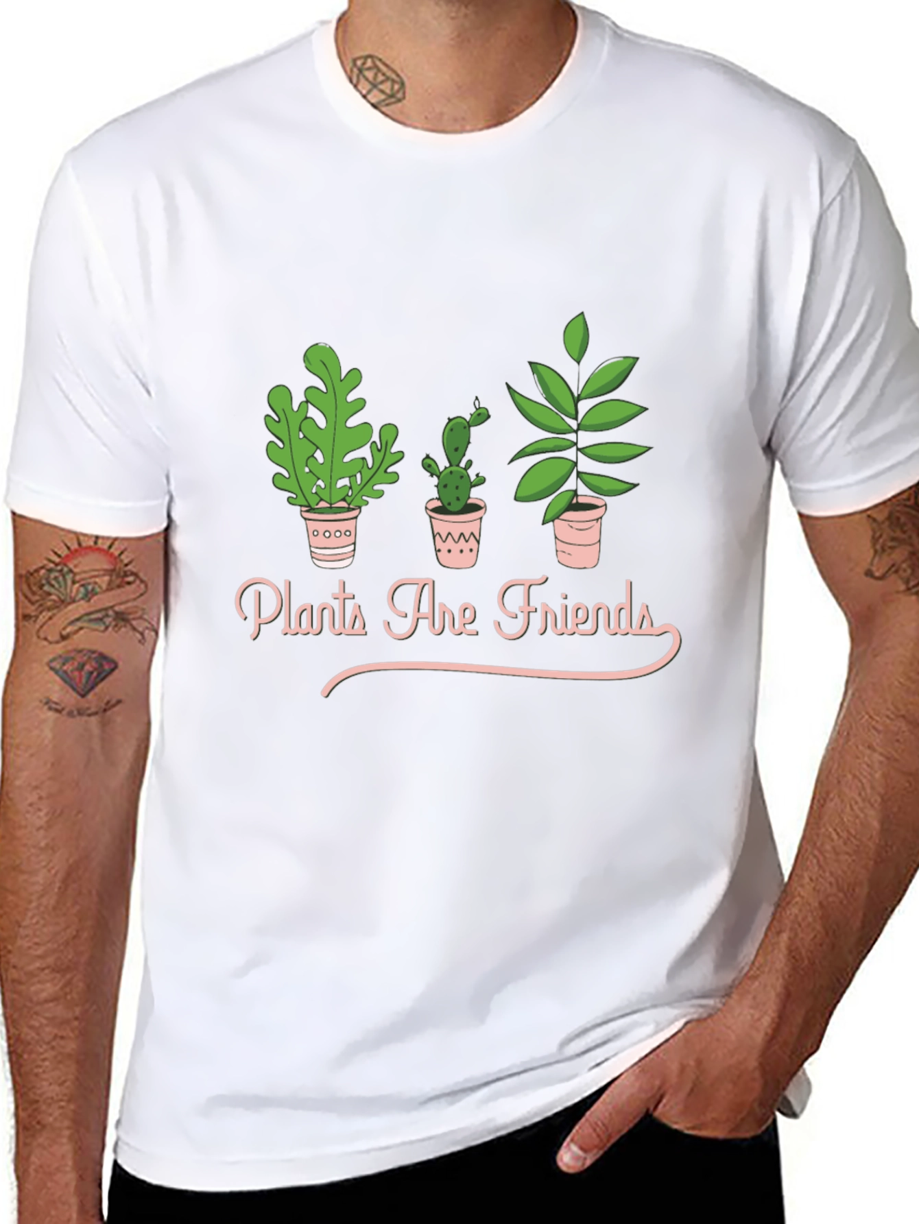 Show your love for plants with this stylish black cotton t-shirt. The tee features a delightful graphic of three potted plants, accompanied by the playful text "Plants Are Friends" in a charming script. Made from soft, breathable cotton, this t-shirt offers both comfort and style. The print is eye-catching and adds a touch of whimsy to any outfit. Perfect for casual outings, gardening enthusiasts, or anyone who appreciates a touch of greenery. Pair it with jeans, shorts, or a skirt for a relaxed and trendy look. This t-shirt makes a great gift for plant lovers!