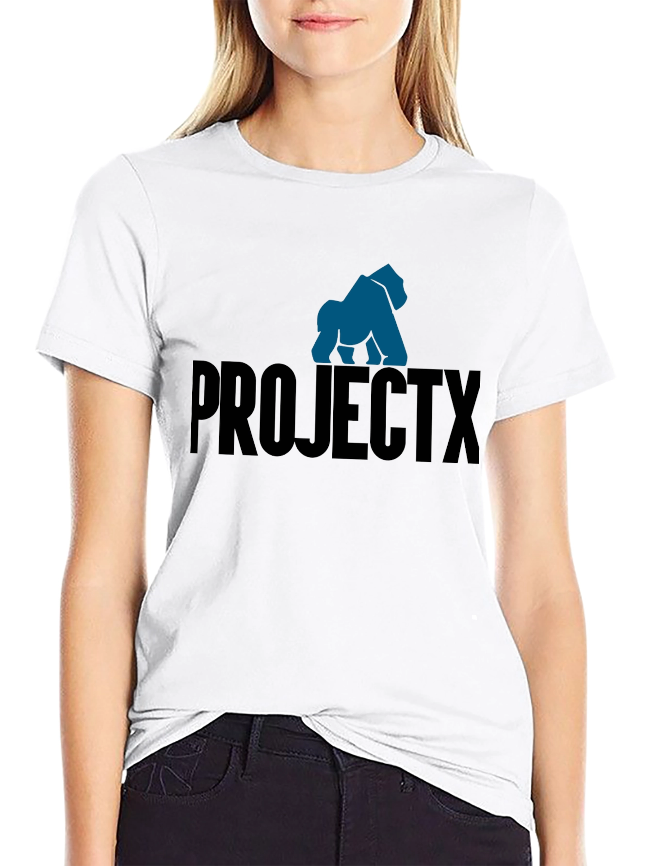 Show off your style with this ProjectX graphic t-shirt. This black tee features a bold design with the words ProjectX, set against a striking blue gorilla silhouette. Made from a comfortable, breathable fabric, this shirt is perfect for everyday wear. The classic fit ensures a relaxed and stylish look, ideal for casual outings or workouts. Add this unique piece to your wardrobe and make a statement wherever you go. Comfortable, durable, and eye-catching, this tee is a must-have for any fan.