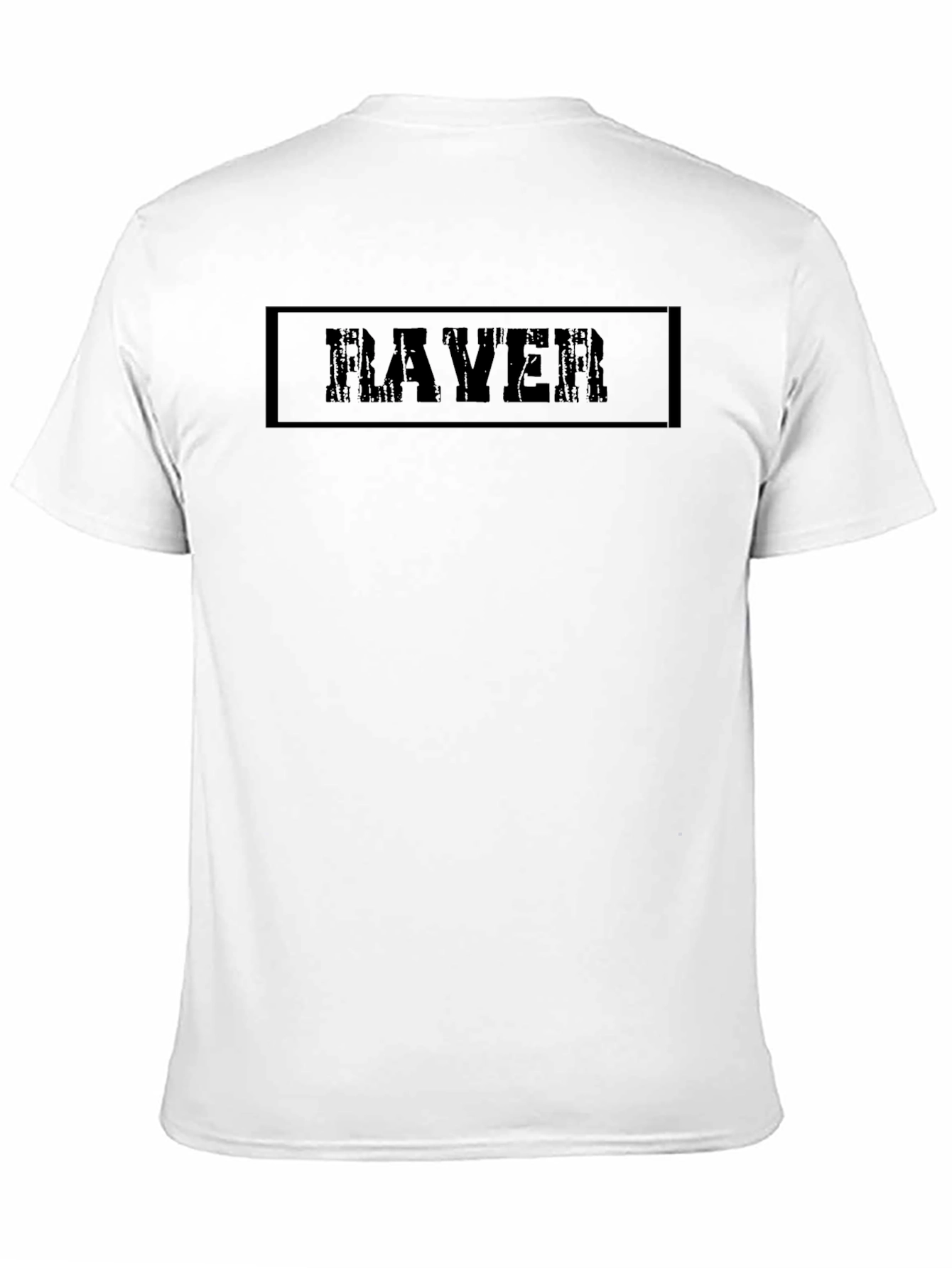 Showcase your love for rave culture with this stylish black t-shirt. The tee features a bold "RAVER" graphic encased in a rectangular border, adding an edgy touch. Made from soft, breathable cotton, this tee ensures all-day comfort whether you're hitting the dance floor or just hanging out with friends. Its classic fit and versatile design make it perfect for pairing with jeans, shorts, or joggers. Stand out from the crowd and let everyone know you're part of the rave scene. A must-have addition to any music lover's wardrobe!