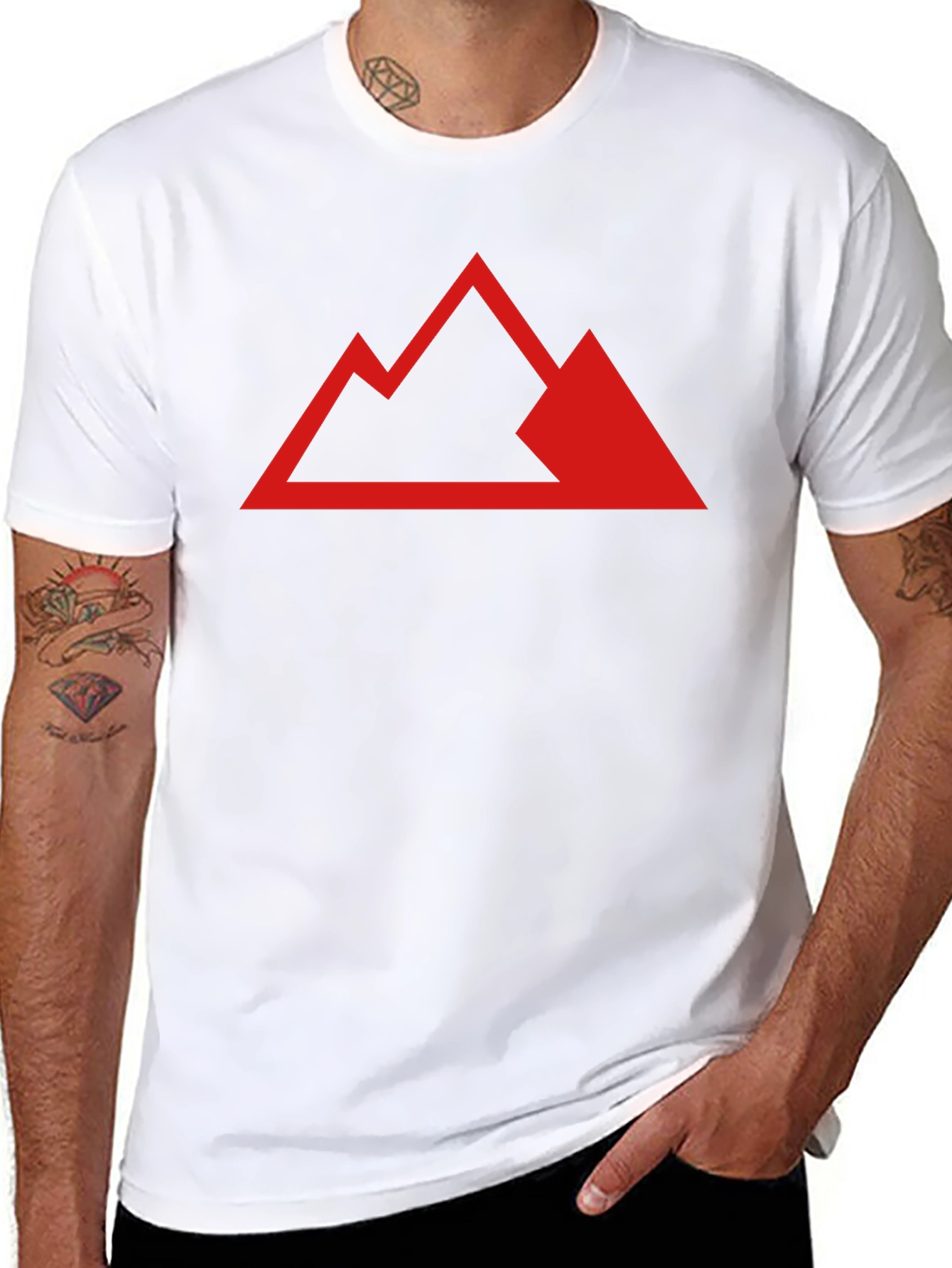 Show off your outdoorsy side with this stylish black t-shirt. The shirt features a bold red graphic of a mountain range, perfect for nature lovers and adventure seekers. Made from a comfortable-looking material, this tee is ideal for everyday wear, hiking trips, or casual outings. The prominent design adds a touch of rugged charm to any outfit. This versatile t-shirt makes a great gift or a personal statement piece to showcase your passion for the great outdoors. Grab this shirt and let the mountains inspire you!