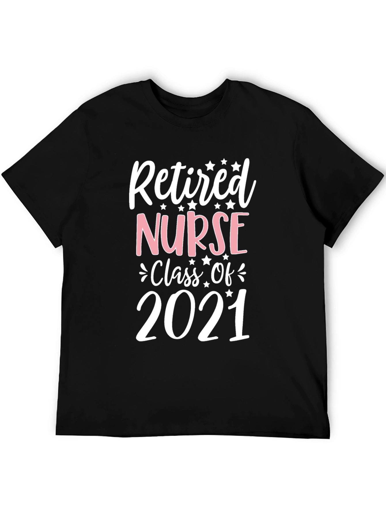 Show your pride as a retired nurse with this stylish black t-shirt! Featuring a bold design that reads "Retired Nurse Class of 2021" in eye-catching white and pink lettering, this shirt is perfect for celebrating your achievement. The design is adorned with cute star accents, adding a touch of whimsy. Made from a comfortable, soft-touch fabric, it's ideal for casual wear, reunions, or as a thoughtful gift for a retiring nurse. Embrace your well-deserved retirement in comfort and style!