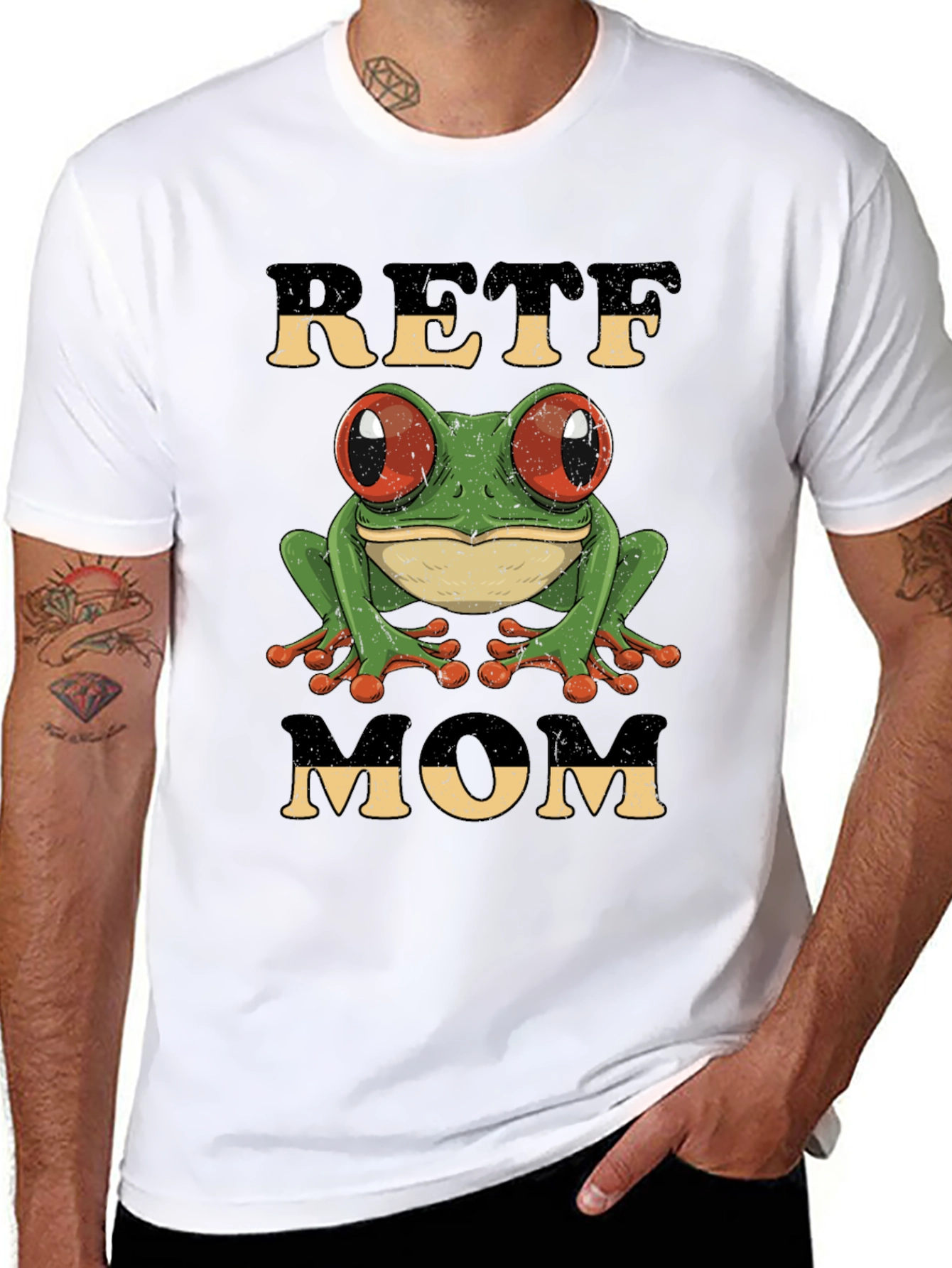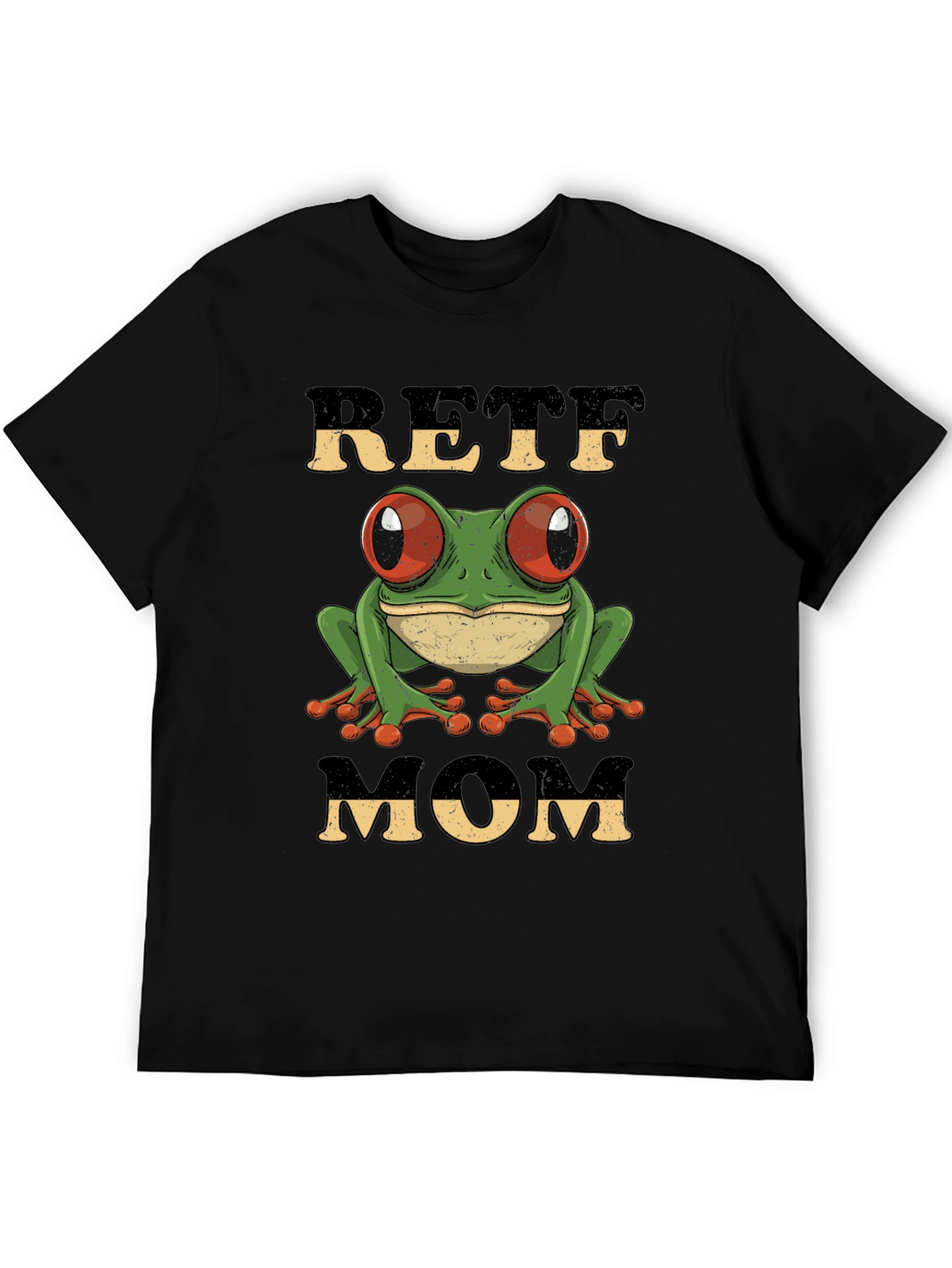 Show your frog-loving mom some appreciation with this unique graphic t-shirt! The design features a cute, cartoon-style green tree frog with vibrant red eyes. Above and below the frog are the words "RETRO" and "MOM" in a vintage, distressed font. Made from a soft, comfortable fabric, this tee is perfect for everyday wear. Whether your mom loves amphibians or appreciates a retro aesthetic, this t-shirt makes a thoughtful and stylish gift. Grab one for Mother's Day, her birthday, or just because!