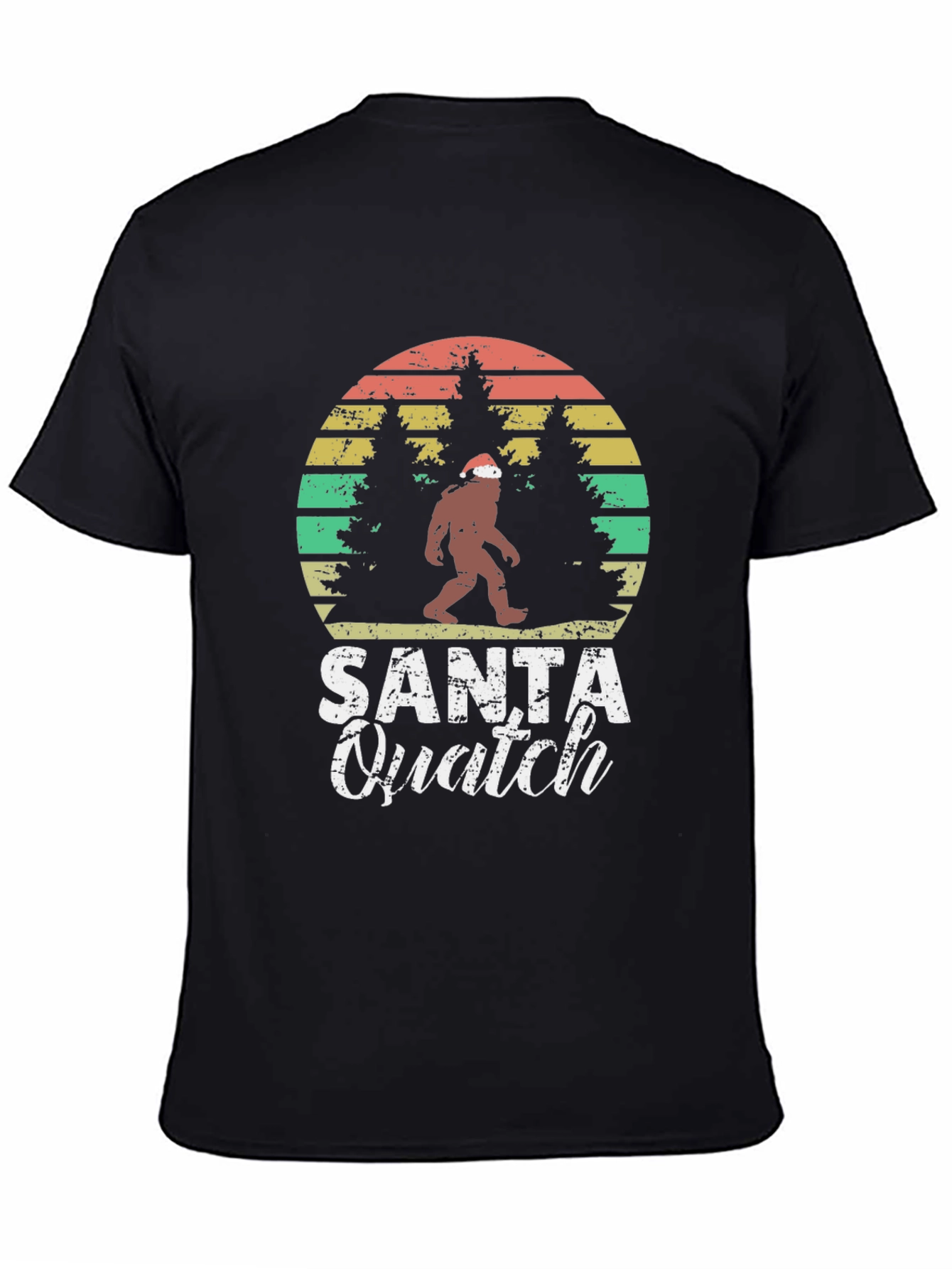 Embrace the holiday spirit with this unique Santa Quatch T-shirt! Featuring a playful design of Bigfoot sporting a Santa hat amidst a vintage-style forest backdrop, this tee is sure to spark conversations and spread holiday cheer. The design incorporates the words "Santa Quatch" in a distressed font for a retro vibe. Made from a comfortable and durable fabric, it's perfect for casual wear during the Christmas season or any time you want to show off your love for cryptids and the holidays. Get yours today and make this Christmas unforgettable!