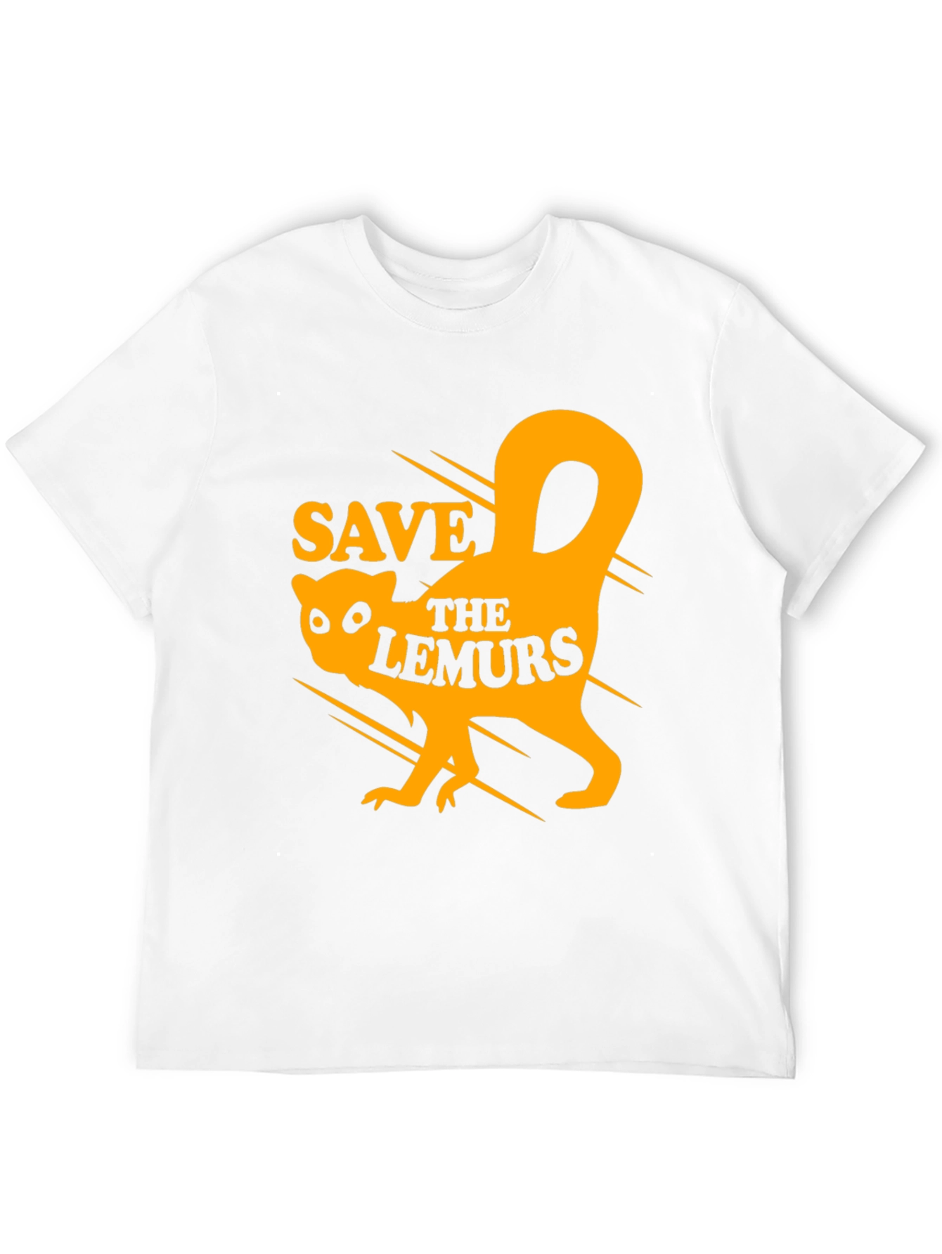 Show your support for wildlife conservation with this eye-catching graphic tee. Featuring a stylized lemur silhouette and the call to action "Save the Lemurs," this black t-shirt makes a statement. The design is bold and orange, ensuring it stands out. Made from what appears to be a soft, comfortable cotton blend, this shirt is perfect for everyday wear, activism events, or casual outings. Advocate for these amazing animals while looking stylish with this unique and meaningful tee.