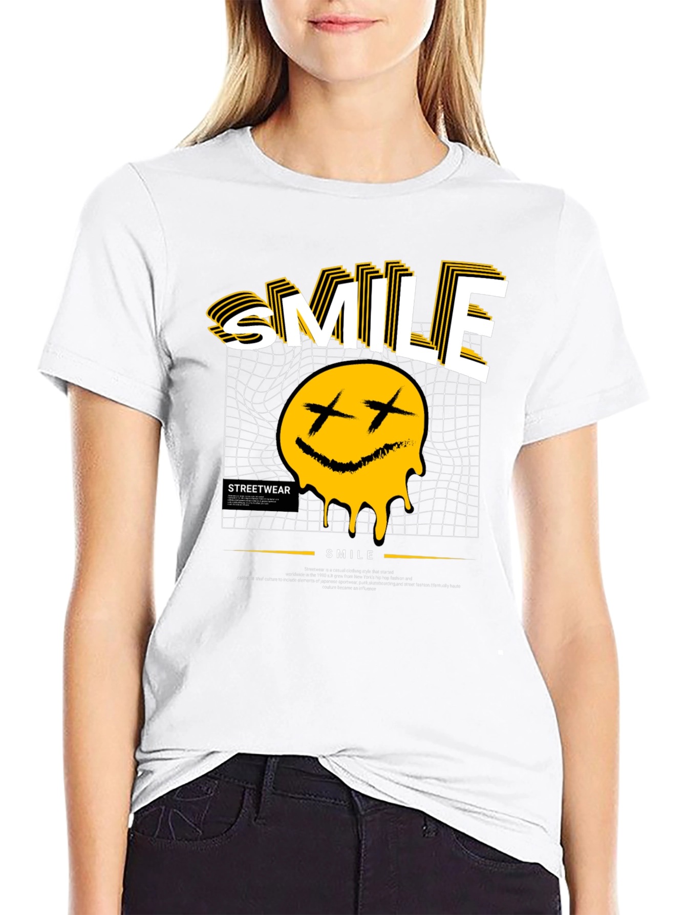 Elevate your streetwear game with this bold black graphic tee. The shirt features a unique 'SMILE' design with a dripping smiley face and a distorted grid background, blending edgy style with a playful vibe. Made from comfortable, breathable fabric, this tee is perfect for everyday wear. Pair it with jeans or shorts for a casual look, or layer it under a jacket for a more stylish ensemble. Make a statement with this eye-catching tee and express your individuality.
