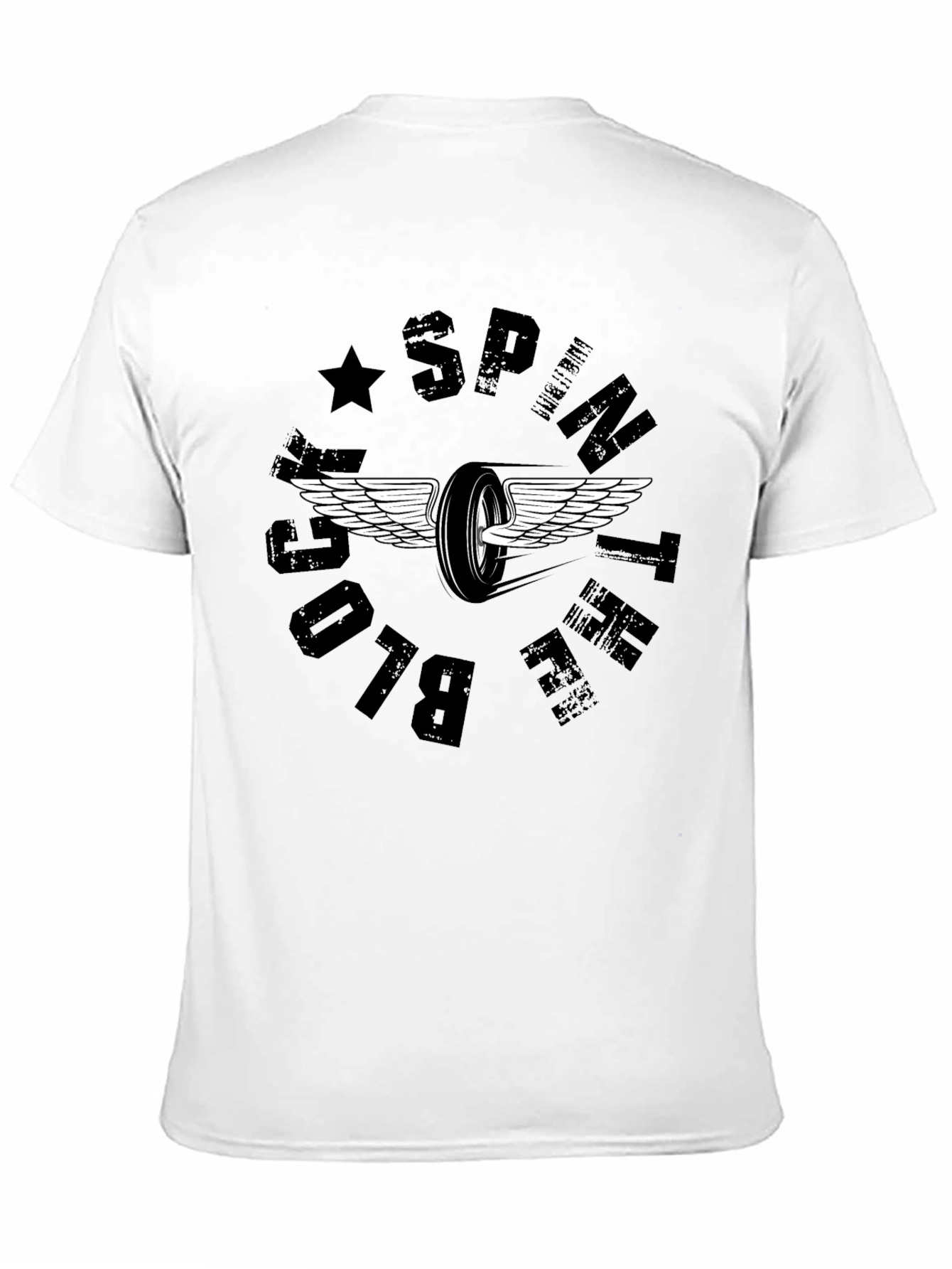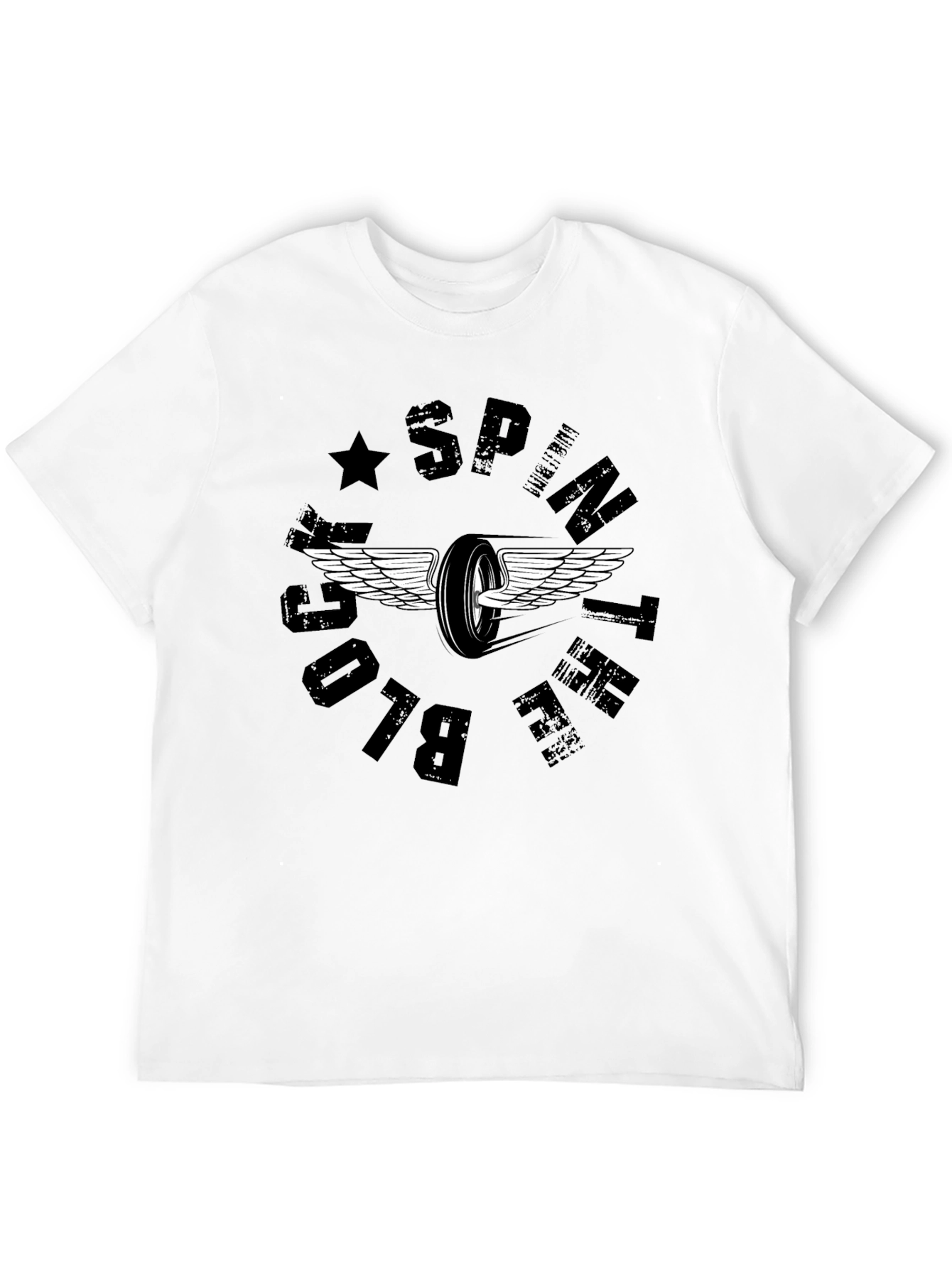 Showcase your love for racing with this unique black t-shirt. Featuring a stylized winged wheel design encircled by "Sprint Block" text, this tee is perfect for motorsports enthusiasts. The print has a cool vintage vibe. Made from what appears to be soft, breathable cotton, it offers both comfort and style. Pair it with jeans or shorts for a casual look that makes a statement. A must-have for race fans and anyone who appreciates cool graphic tees. Get yours today and show off your passion for speed!