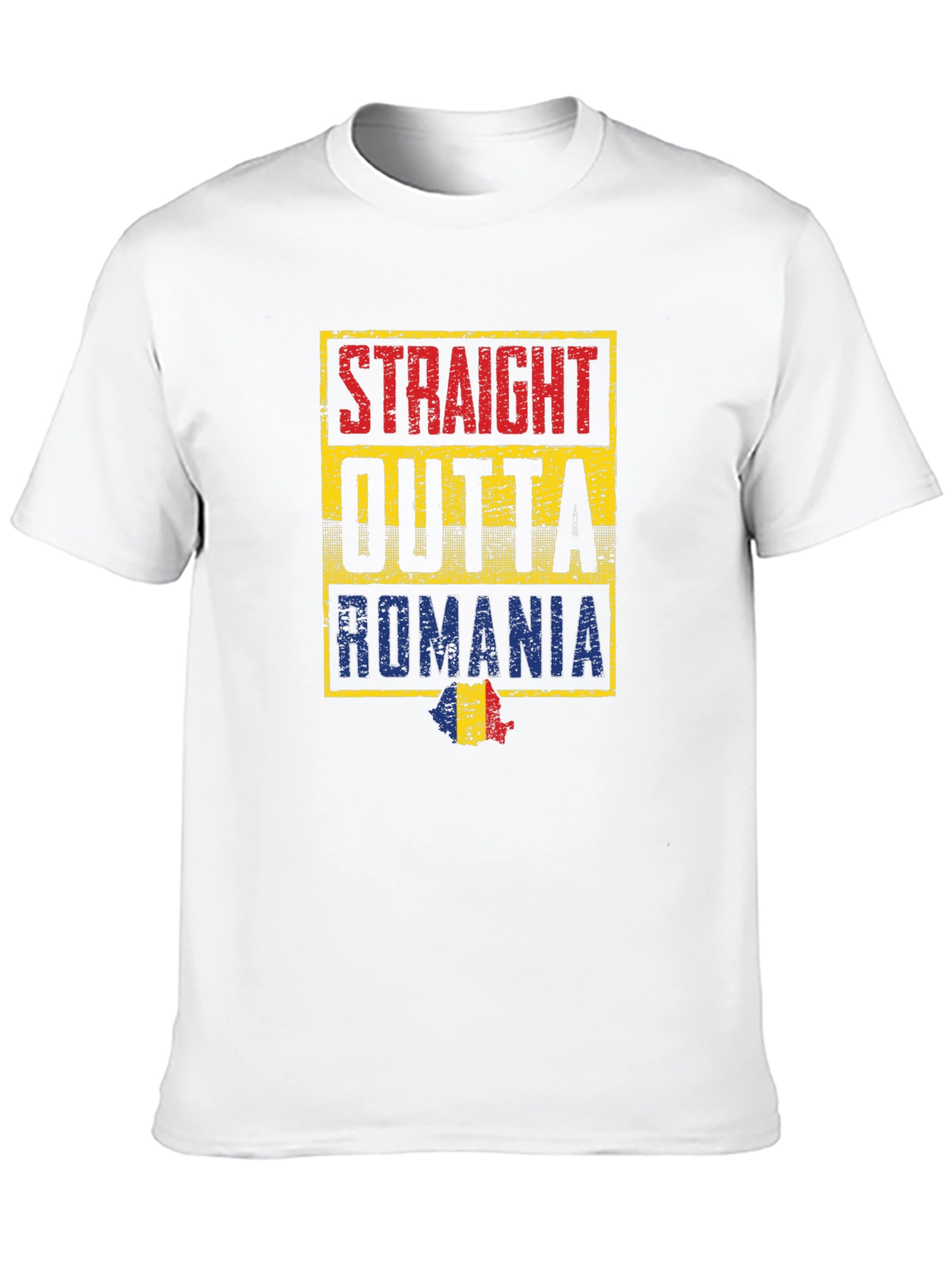 Show off your Romanian heritage with this unique "Straight Outta Romania" t-shirt. Featuring a bold, distressed design with the colors of the Romanian flag, this shirt is perfect for expressing your national pride. The design incorporates a map of Romania adding a subtle visual element. This t-shirt would be perfect for casual wear, national holidays, or as a gift for a Romanian friend or family member. Made from comfortable material, it is suitable for everyday use. Let everyone know where you come from with this stylish and eye-catching t-shirt.