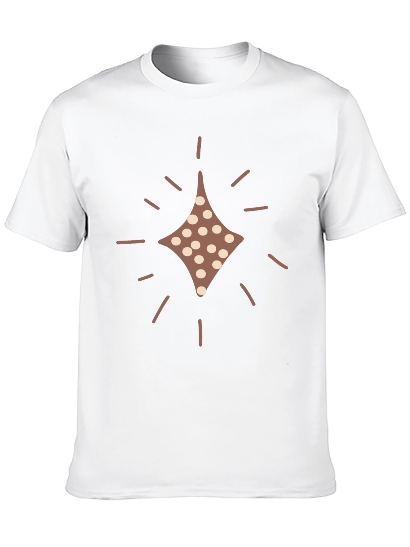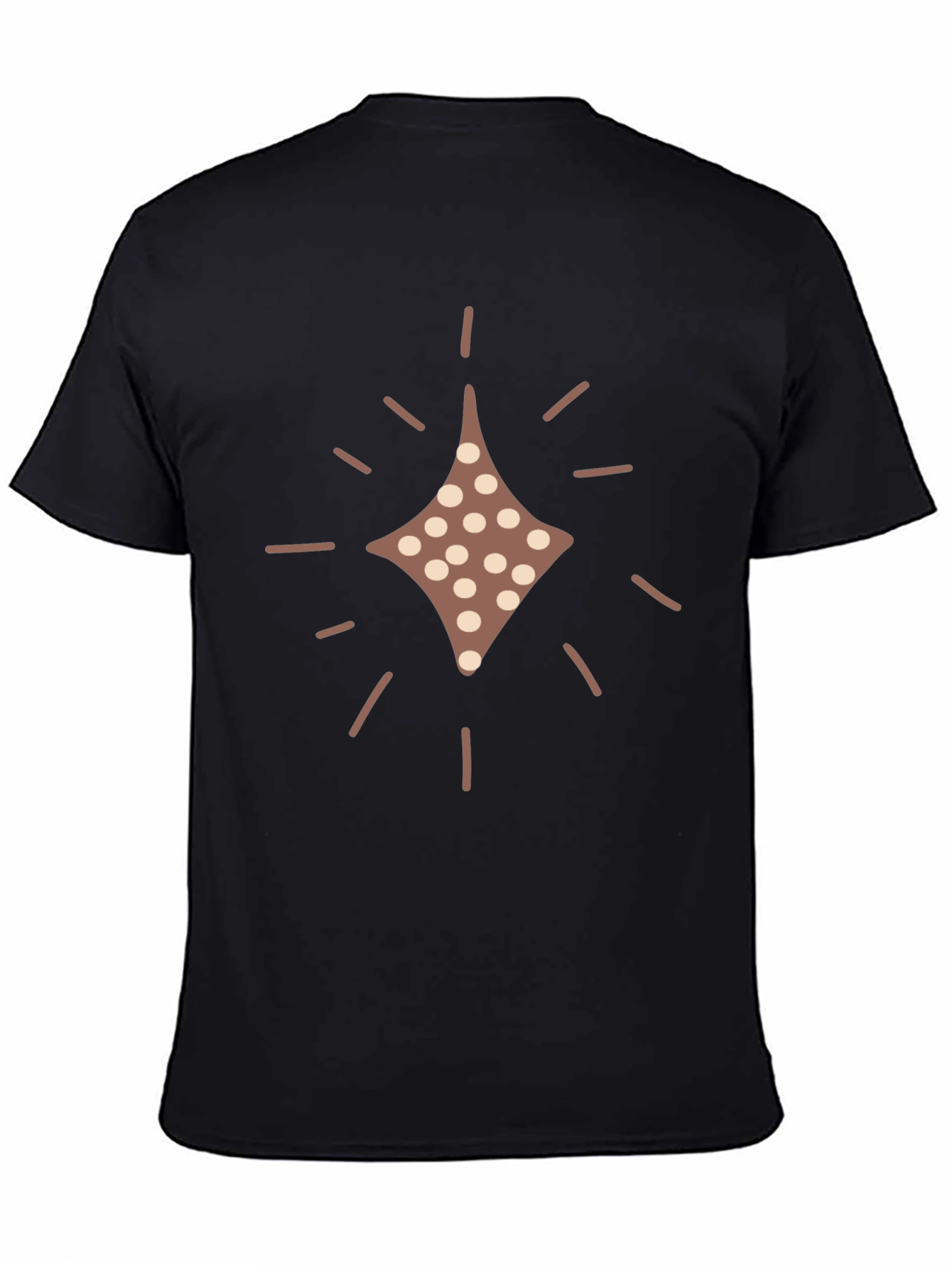 Elevate your casual style with this eye-catching black t-shirt. The shirt features a unique diamond-shaped design at the center, adorned with playful dots. The diamond is further highlighted by radiating lines, adding a touch of sparkle to your look. Made from a comfortable and breathable fabric, this tee is perfect for everyday wear. Its classic fit makes it suitable for various occasions. Pair it with jeans or shorts for a relaxed weekend vibe, or dress it up with a blazer for a more stylish ensemble. Stand out with this distinctive and fashionable t-shirt.
