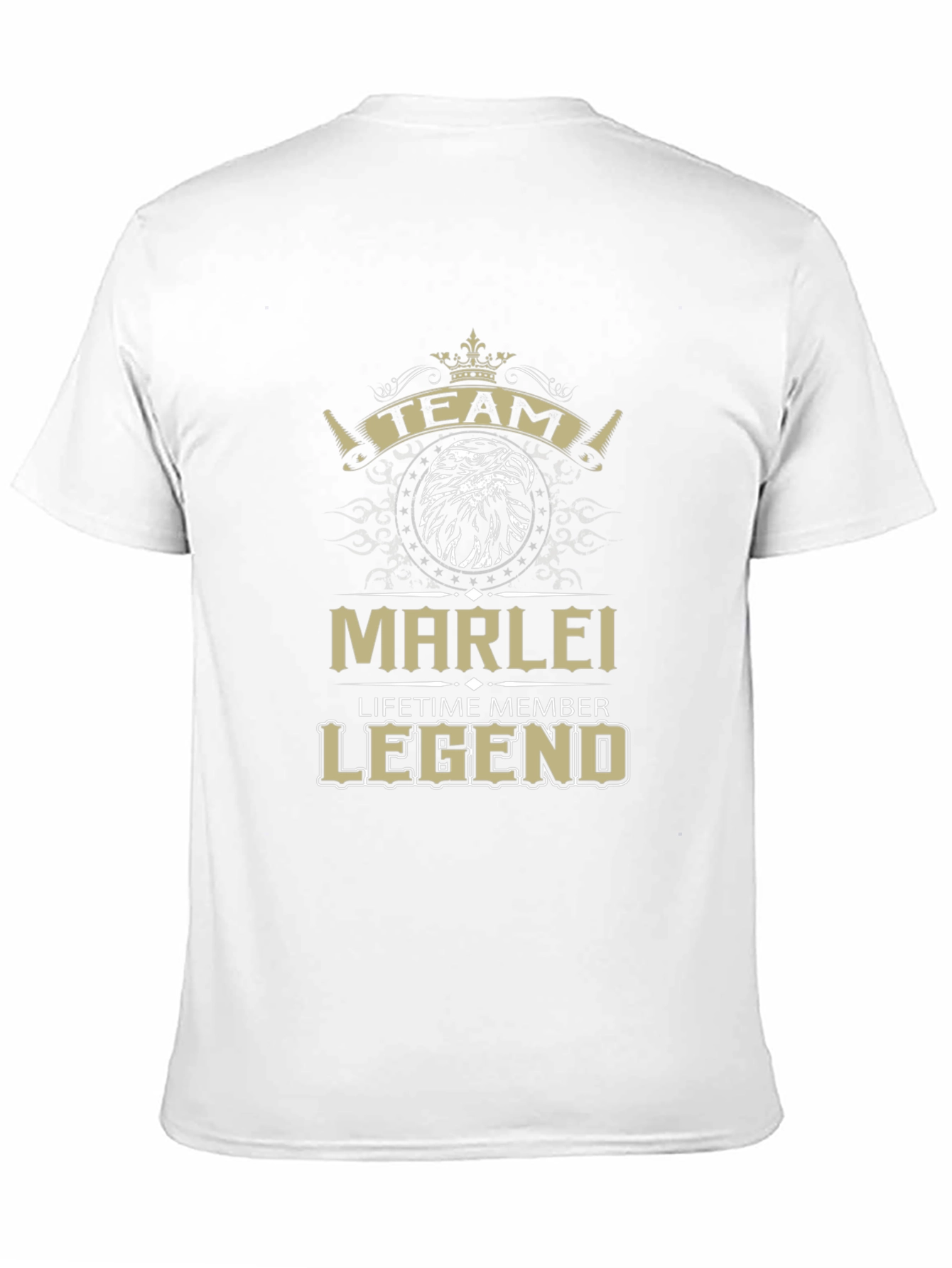 Show your team spirit with this Team Marlei Legend T-shirt! The shirt features a bold eagle design and the phrase "Team Marlei Lifetime Member Legend" in a striking gold font. Made from a comfortable, breathable fabric, this tee is perfect for casual wear or supporting your team at events. Ideal for Marlei and team members who want to display their pride and commitment. This shirt makes a great gift and a memorable keepsake. Order yours today!