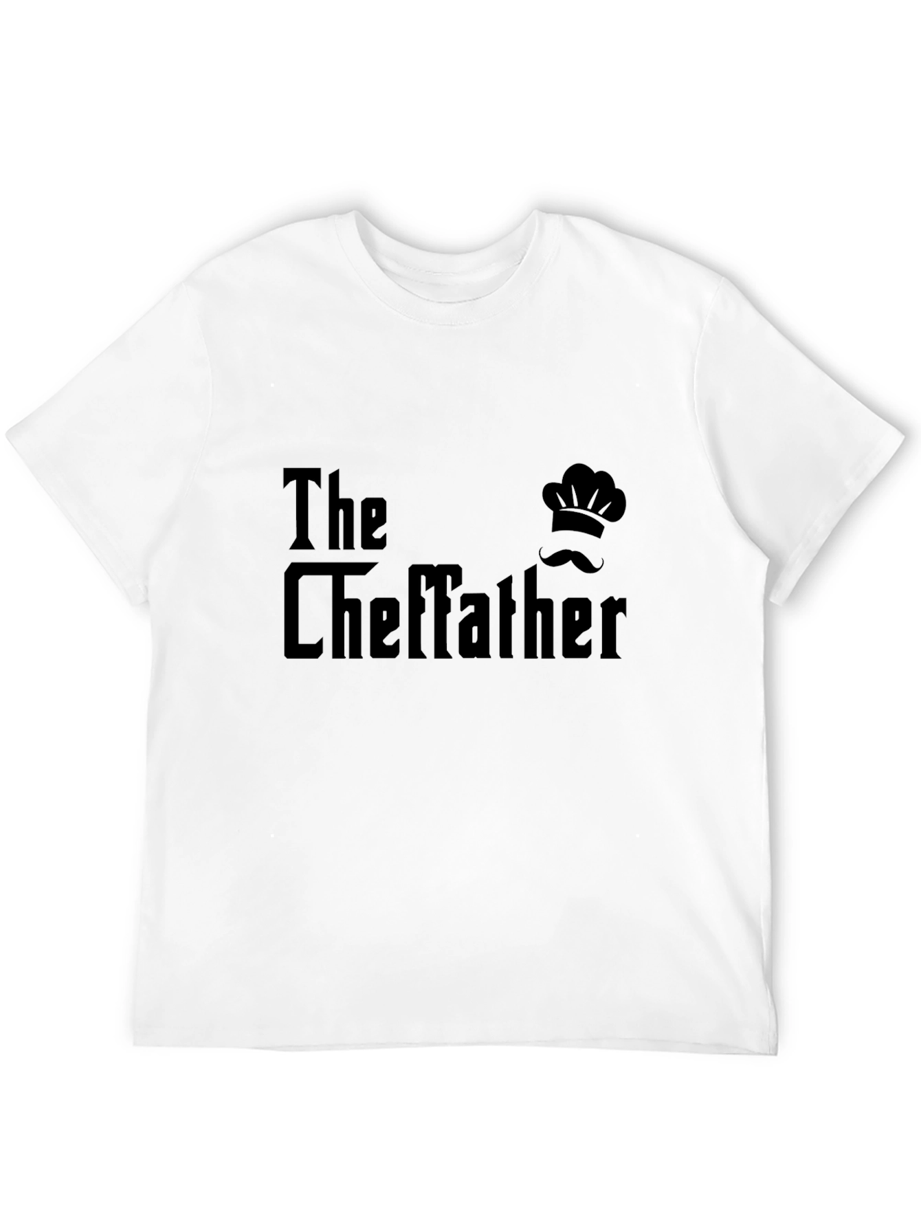 This black t-shirt features a playful design that reads "The Cheffather", complete with a chef's hat and mustache graphic. Made from a comfortable-looking fabric, this tee is perfect for chefs, cooking enthusiasts, and dads with a great sense of humor. The classic fit and dark color make it versatile for casual wear. Show off your culinary pride with this unique and humorous t-shirt, or gift it to the special chef dad in your life for Father's Day, birthdays, or any occasion. This tee is sure to get a laugh!