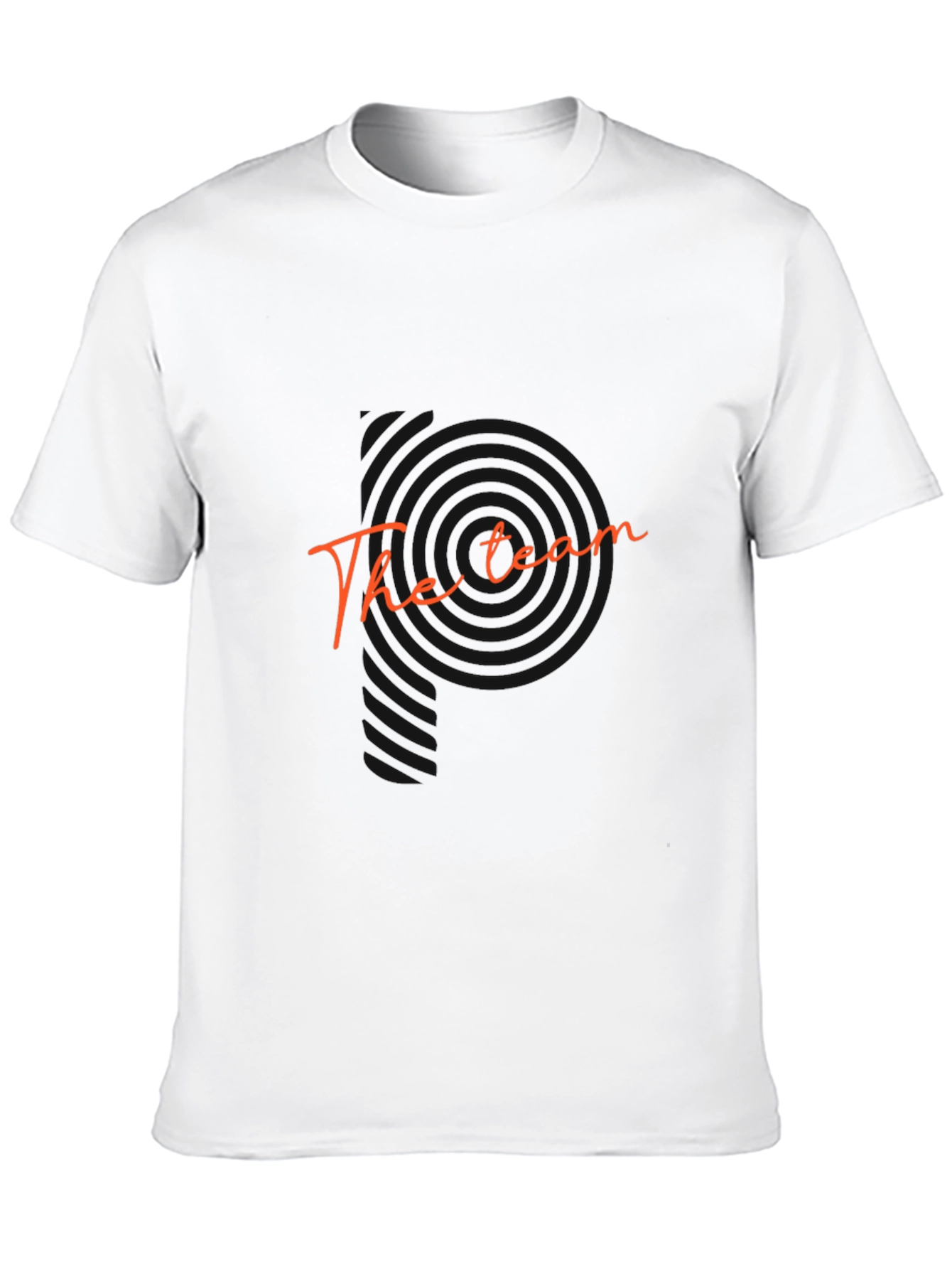 Show off your team pride with this stylish black t-shirt. Crafted from a soft, comfortable fabric, this tee features 'The Team' in a bold orange script across the chest, making it a standout piece. The classic crew neck and short sleeve design ensures a relaxed fit, perfect for everyday wear or cheering on your favorite team. Pair it with jeans, shorts, or even dress it up under a jacket for a versatile look. Express yourself with this unique tee!