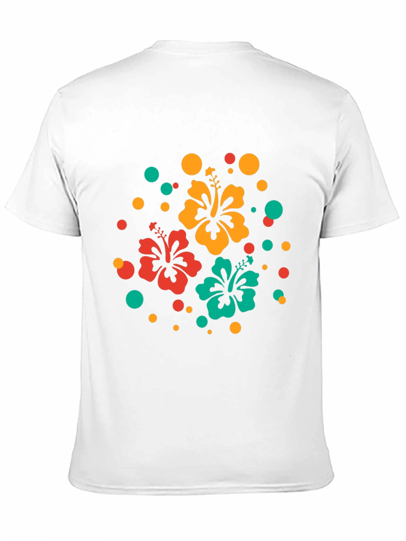 Embrace island vibes with this stylish black t-shirt. The shirt features a vibrant design with hibiscus flowers in red, orange, and teal, playfully surrounded by matching polka dots. Made from comfortable, breathable fabric, this tee is perfect for casual wear, vacations, or summer outings. Its eye-catching graphic and classic fit make it a versatile addition to any wardrobe. Stand out and spread a little sunshine wherever you go with this must-have tropical tee. Makes a great gift!
