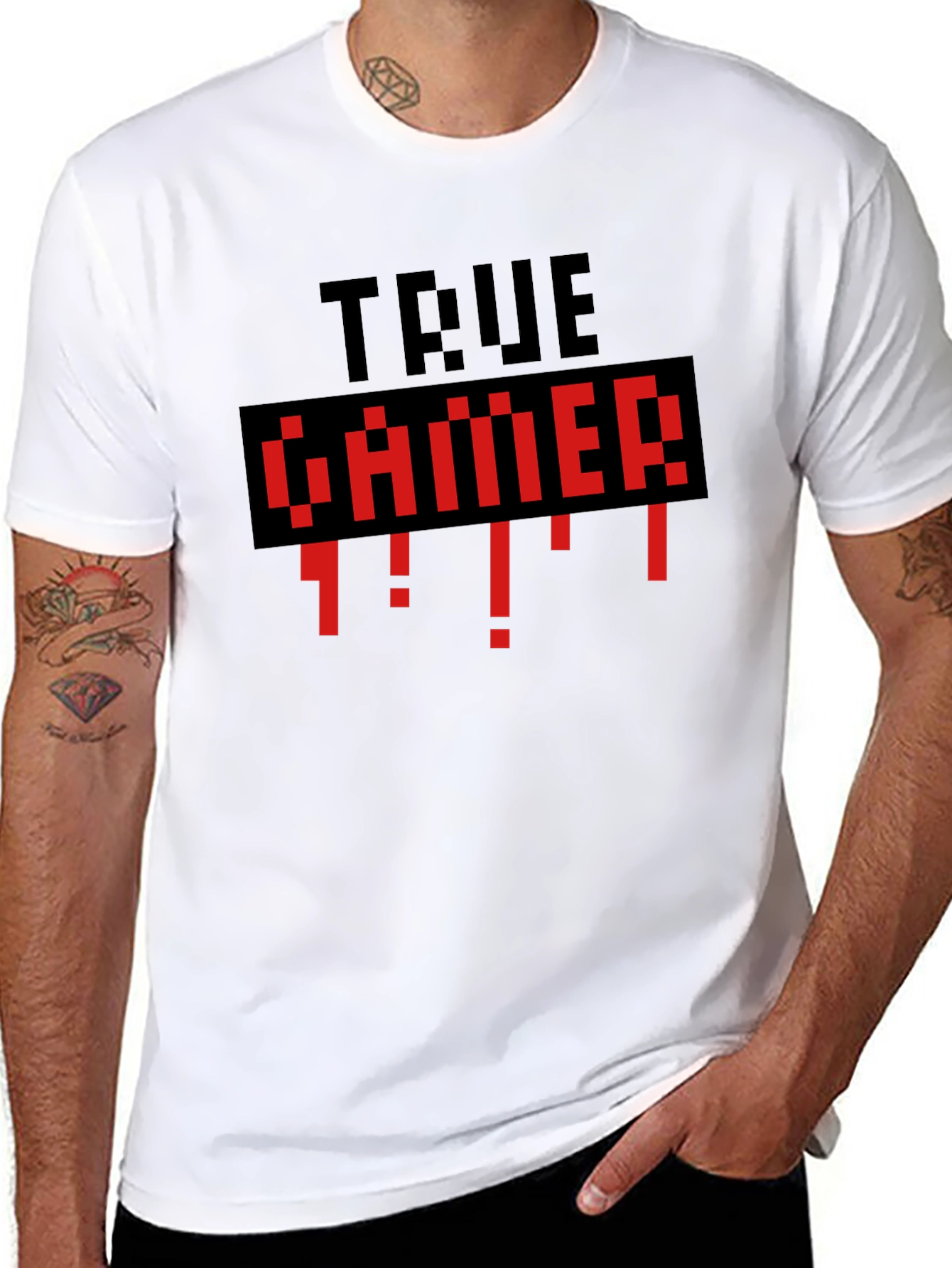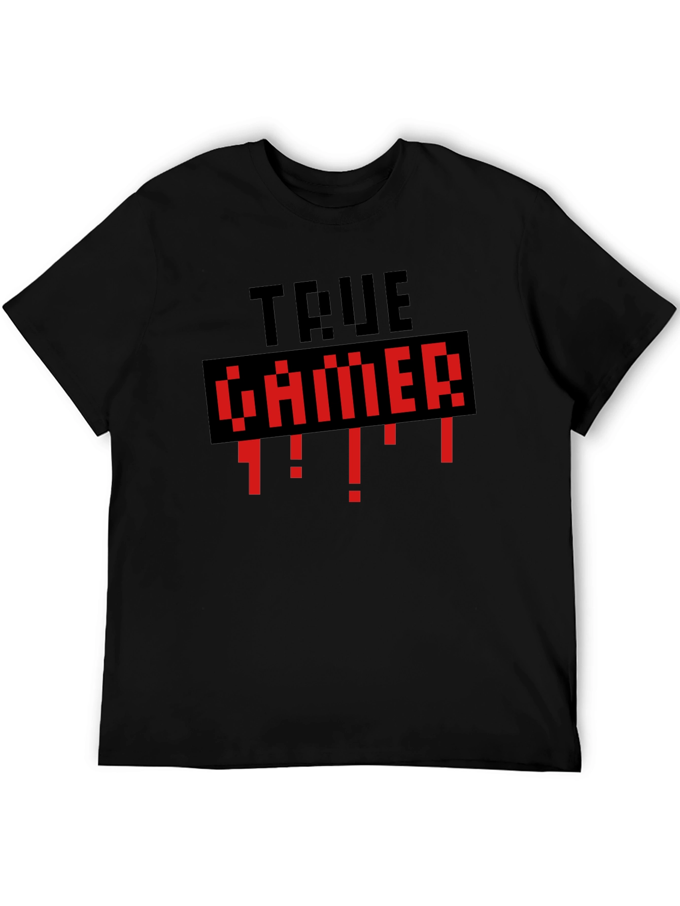 Level up your style with this bold 'True Gamer' black t-shirt. Featuring a retro pixel font design in red, this shirt is perfect for gaming enthusiasts. The high-quality fabric offers a comfortable fit for everyday wear, whether you're conquering virtual worlds or relaxing with friends. Make a statement and showcase your passion for gaming with this eye-catching tee. Ideal for casual outings, gaming events, or simply expressing your unique personality. Grab yours now and let the world know you're a true gamer!