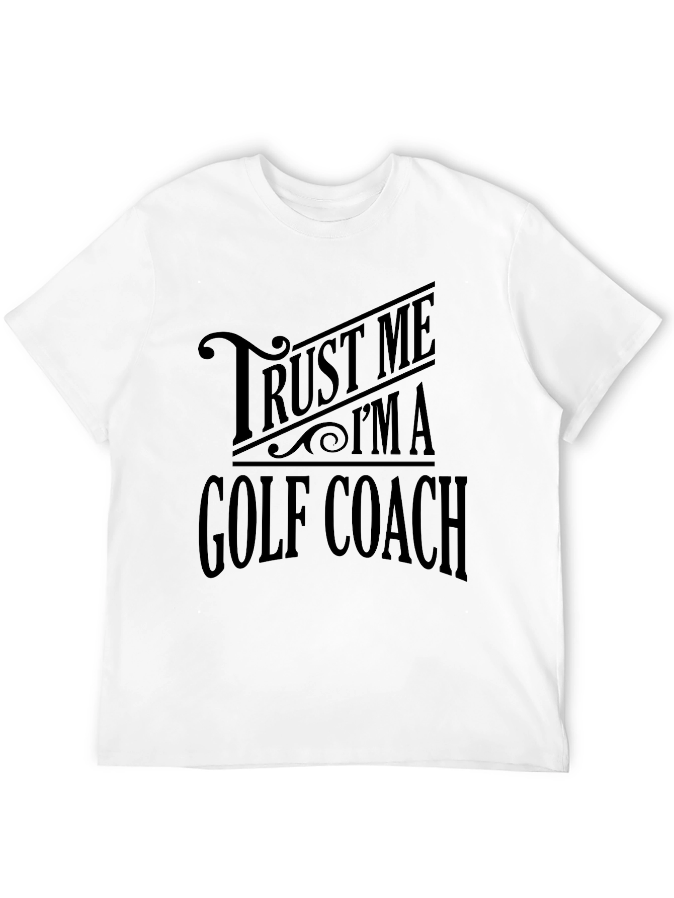 Show off your passion for golf with this classic black t-shirt! Featuring the witty phrase "Trust Me I'm a Golf Coach" in a vintage-inspired font, this tee is perfect for wearing on the green or anywhere you want to show off your expertise. The design is printed on a comfortable and durable material, ensuring it will be a favorite in your wardrobe for years to come. Whether you're teaching the next generation of golfers or simply love the sport, this t-shirt is a must-have addition to your collection. Get yours today and let everyone know you're a golf coach they can trust!