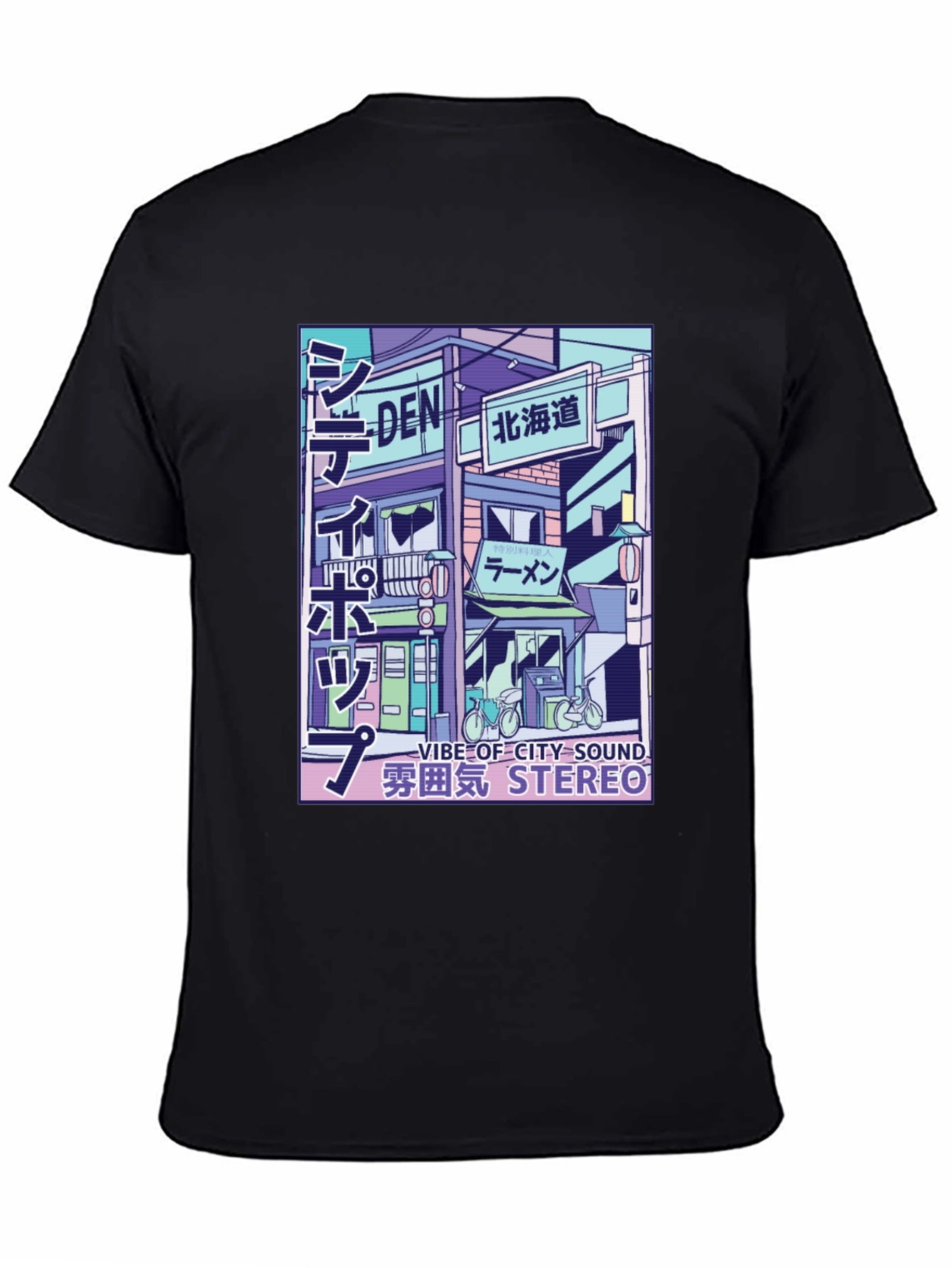 Elevate your streetwear game with this eye-catching black t-shirt! Featuring a vibrant, stylized graphic of a Japanese cityscape with 'Vibe of City Sound Stereo' text, this shirt exudes urban cool. The design boasts bold colors and intricate details, capturing a modern aesthetic. Made from soft, breathable fabric, it ensures all-day comfort. Perfect for casual outings, concerts, or making a statement, this unique tee blends artistic flair with everyday wearability. Add a touch of global trend to your wardrobe!