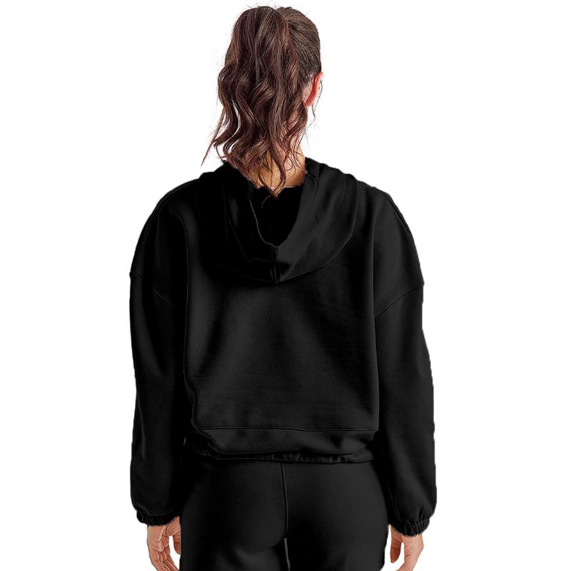 A must-have hoodie that’s both trendy and comfortable. The slightly cropped, oversized fit with a drawstring at the waist provides a flattering shape. Pair it with some jeans for a casual day look or with your best sweatpants for the ultimate loungewear.
