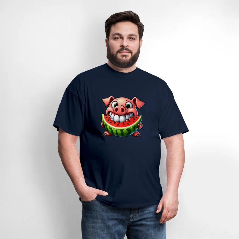 Whimsical pig with watermelon joy and grin